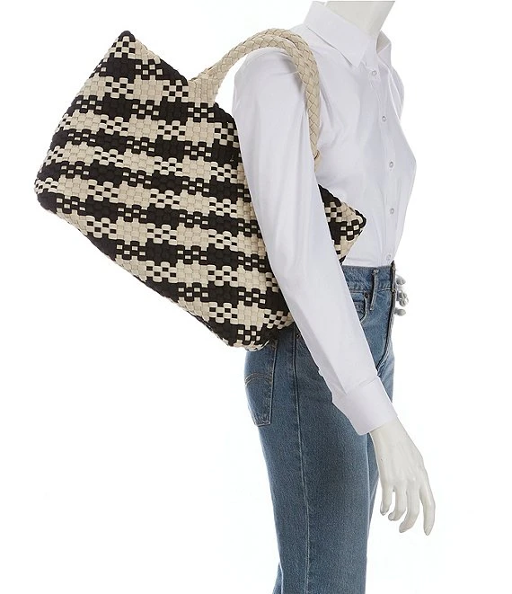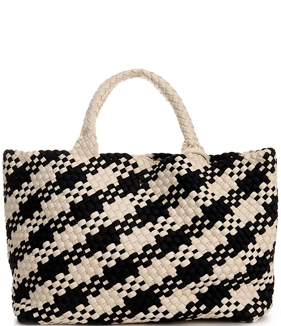 From Antonio Melani, the Large Checkered Neoprene Woven Tote Bag features:
