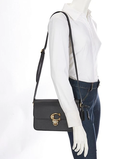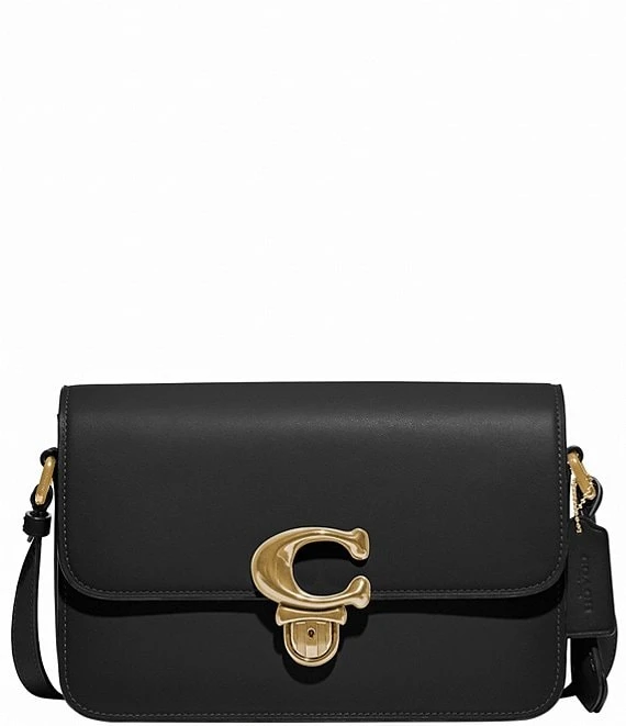 From COACH, the Logo Closure Glove Tanned Leather Studio Shoulder Bag features:Â