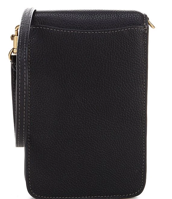From COACH, the Pebbled Leather Gold Tone Phone Crossbody Bag features:Â