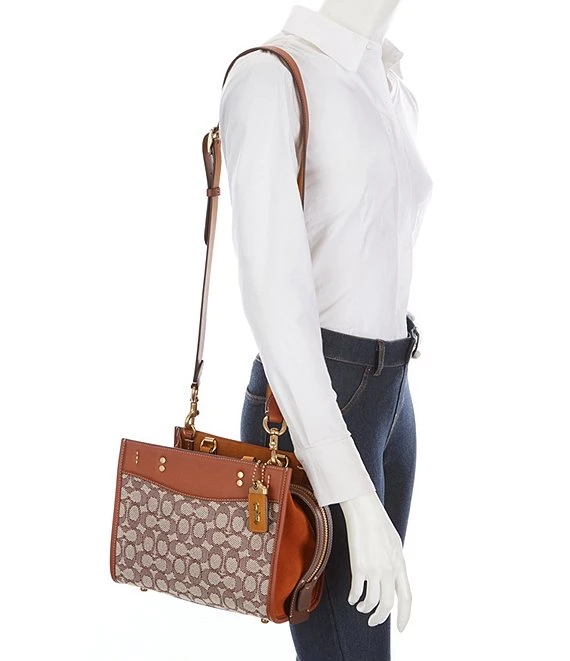 From COACH, the Signature Logo Jacquard Rouge 25 Shoulder Bag features: