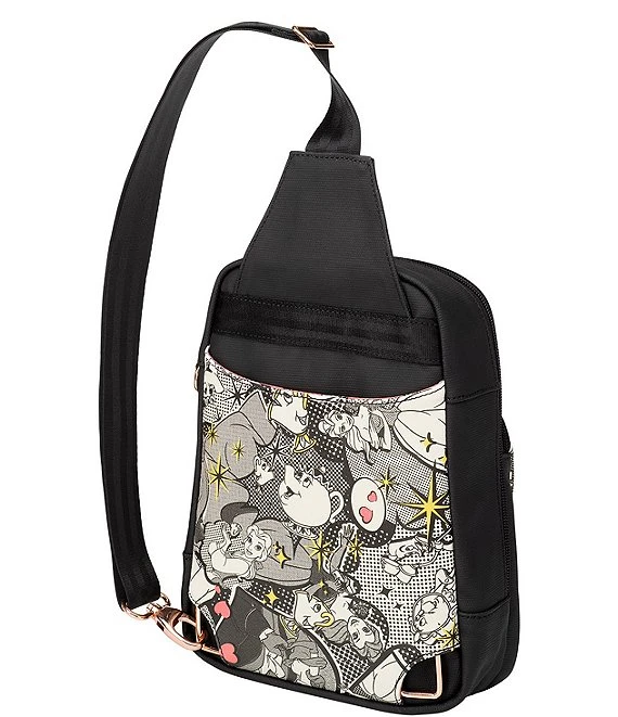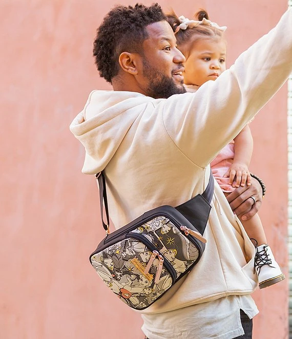 With a mix of bold lines, retro dots, and dash of vintage cheer, our Pop Art Belle Collection brings a lively confidence to the bags and accessories in this striking collaboration with Disney Baby. Practically enchanted with delightful details, the Criss-Cross Sling features an insulated front pocket, a spacious main space, and three ways to configure and carry when in crowds or more open spaces. Plus, it coordinates perfectly with the printed accessories in our delightful Cheerful Chip.