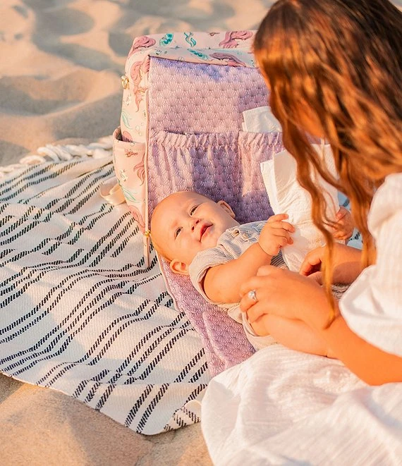 - Zip-out diaper changing station with removable changing pad & pockets for diapers and wipes