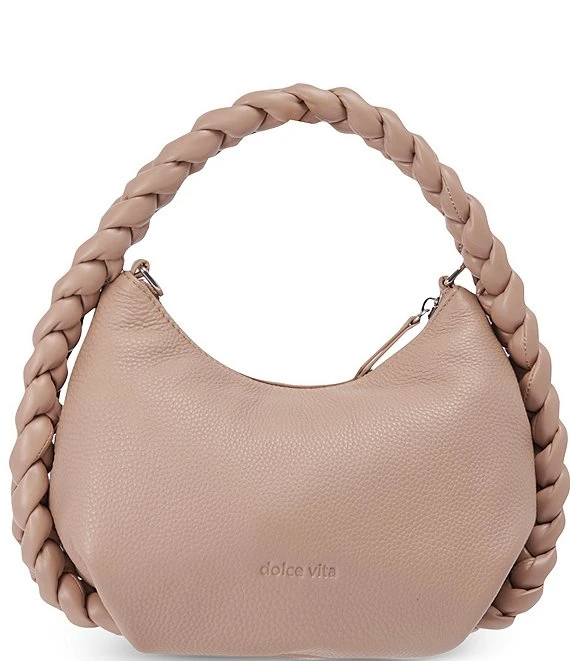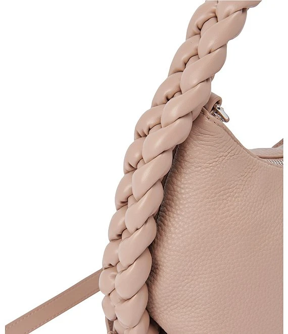 From Dolce Vita, the Pippa Pebbled Leather Braided Handle Silver Tone Shoulder Bag features: