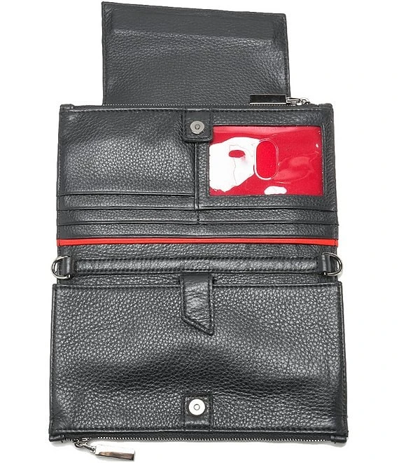 - 4 credit card slots, two bill drop pockets, ID slot, and cell phone pocketÂ