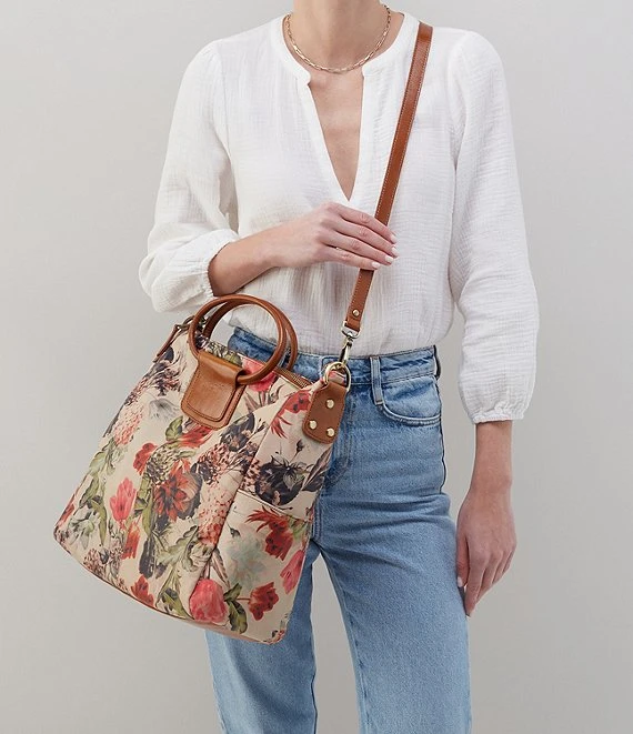 From HOBO, the Sheila Botanical Floral Leather Satchel Bag features: