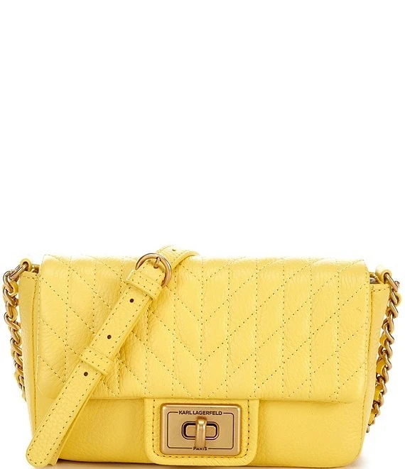 - Luxurious, classic shapes embody refined elegance with quilting, flap closures, turn locks, and chain details.