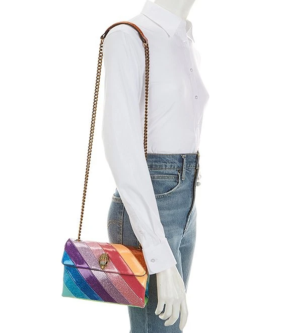 From Kurt Geiger London, the Medium Glitter Rainbow Stripe Crossbody Bag features: