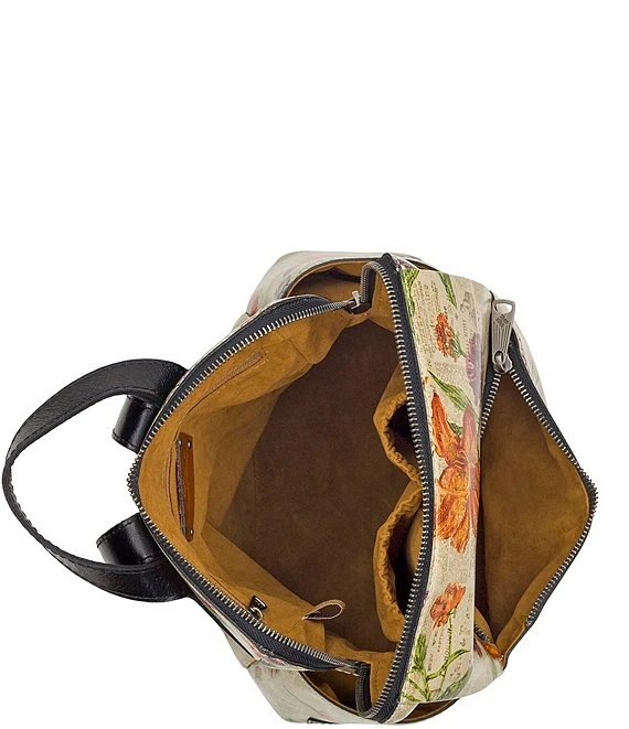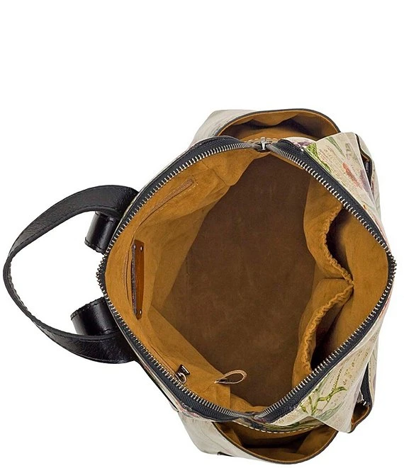 - Exterior: 1 front zip pocket, 1 rear slip pocket with magnetic snap closure, 2 side slip pockets, leather logo plaque, burned edge finish