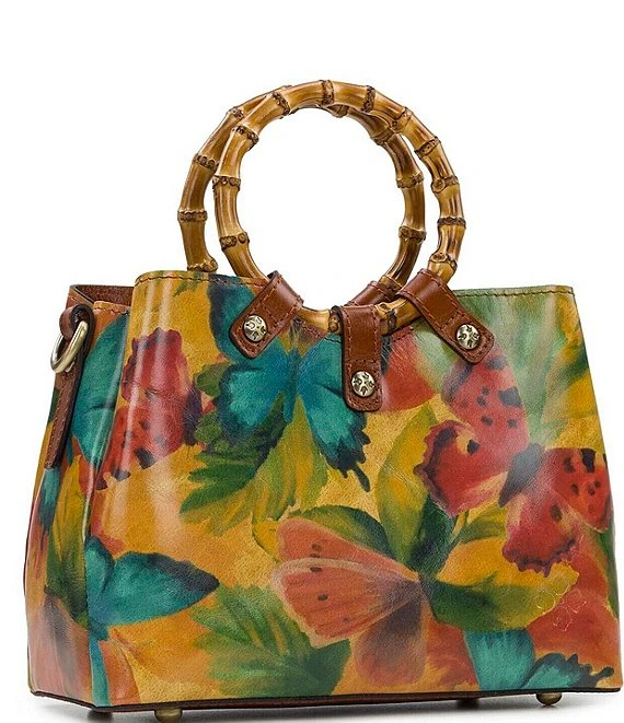 From Patricia Nash, the Empoli Watercolor Bamboo Handle Butterfly Satchel Bag features: