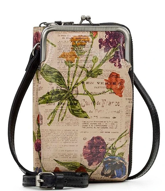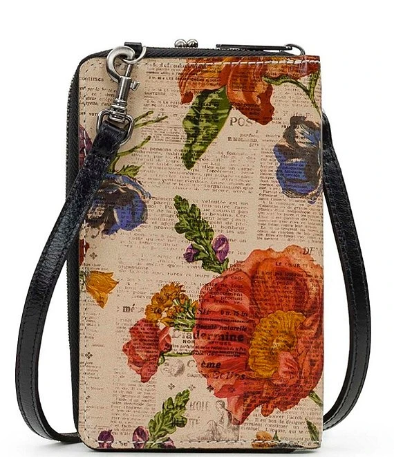 From Patricia Nash, the Pertina Parisian Newspaper Floral Frame Crossbody Pouch features:
