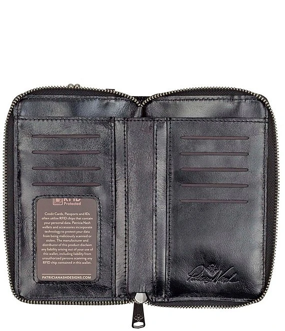 - Interior: 1 full-length slip pocket, 4 slip pockets, 8 credit card slots, 1 ID window faux suede lining, 100% polyester