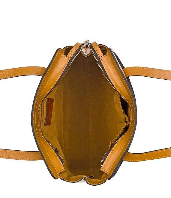 - Signature brushed brass hardware, heavy handcrafted stitching
