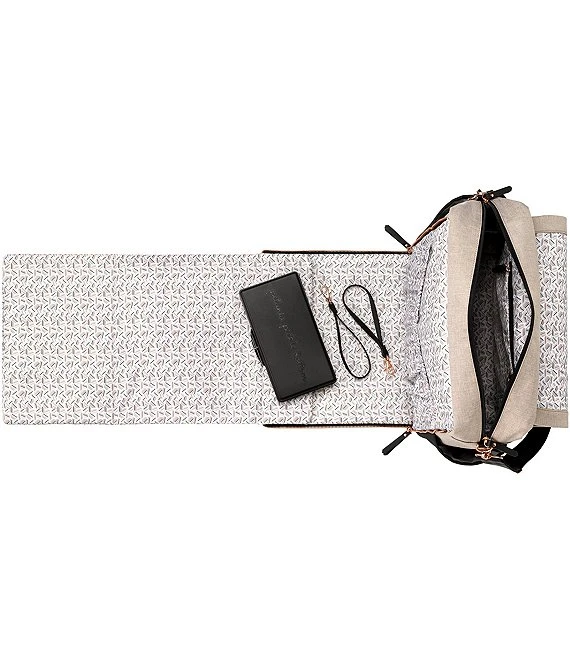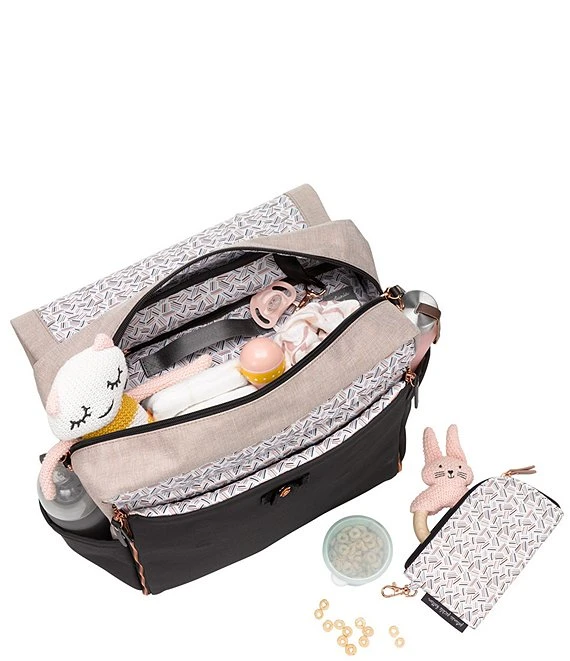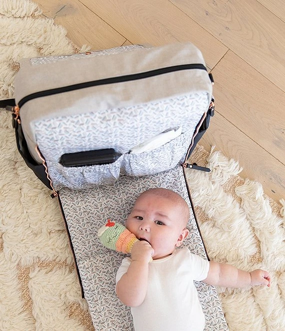 - including a clever built-in changing station, internal organization pockets, multiple carrying options (backpack and cross-body / shoulder), and felt-lined zippered pocket that is easy to reach while the bag is on your back