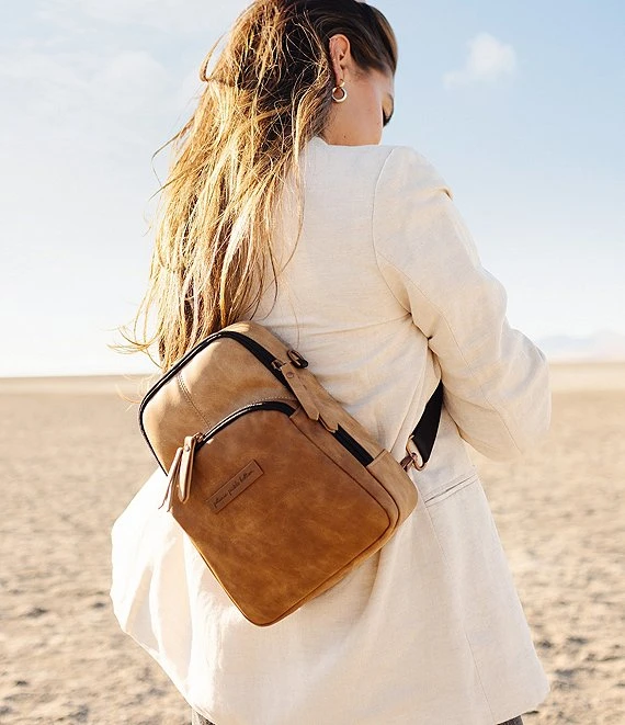 - Adjustable straps to custom-fit sling for wear crossbody from left-to-right or right-to-left