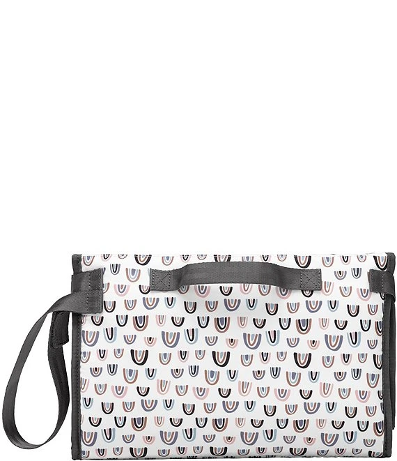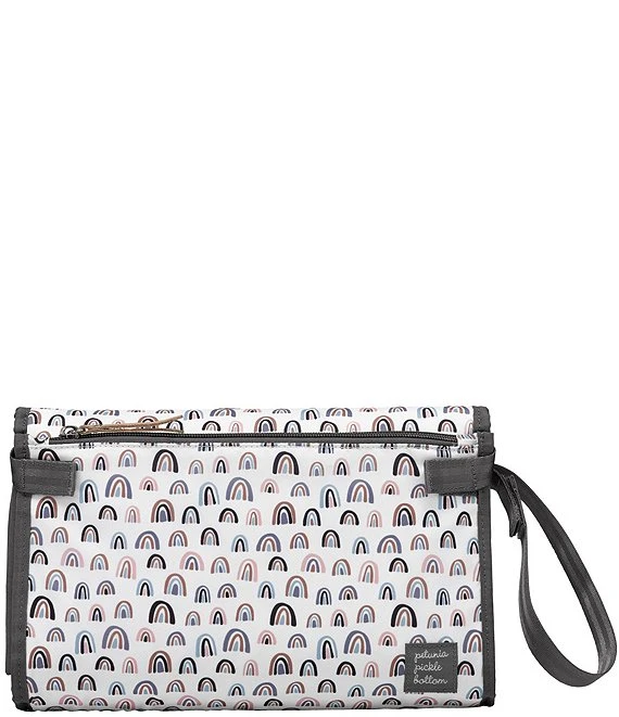 - Compact clutch with fold-out, padded, antimicrobial PEVA changing pad
