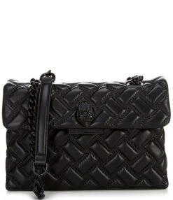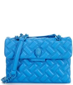 Kurt Geiger London Kensington Drench Long Flap Blue Quilted Leather Wallet On Chain Crossbody Bag