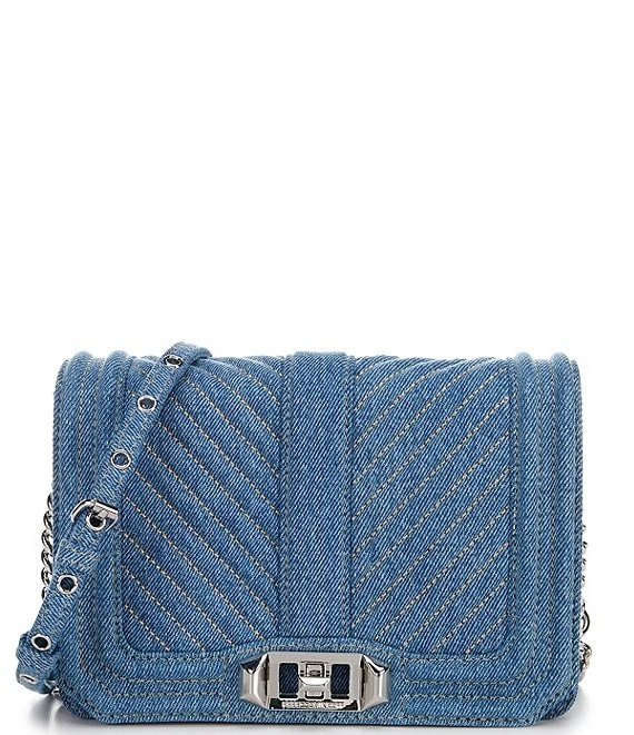 Our best-selling Small Love Crossbody comes with an adjustable pull-through chain shoulder strap, signature turn-lock hardware, and a roomy interior that will fit your essentials. Made from soft cotton denim with chevron quilting, consider it your new go-to every day, day-to-night bag.