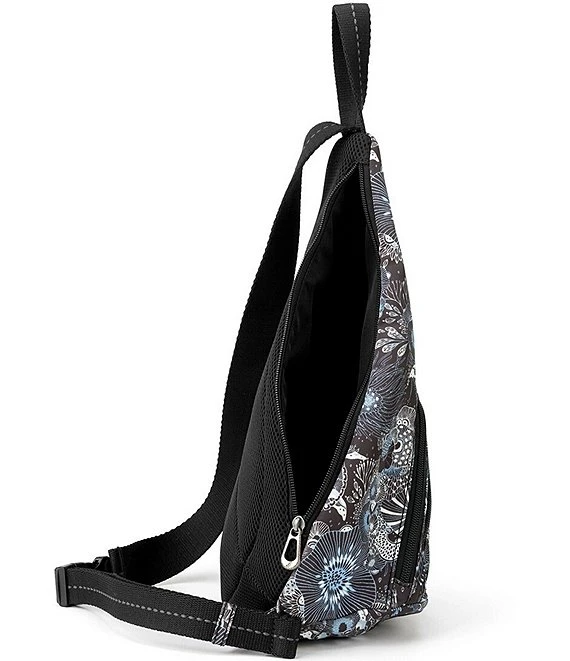 From Sakroots, the On The Go Eco Twill Floral Seascape Print Sling Backpack features: