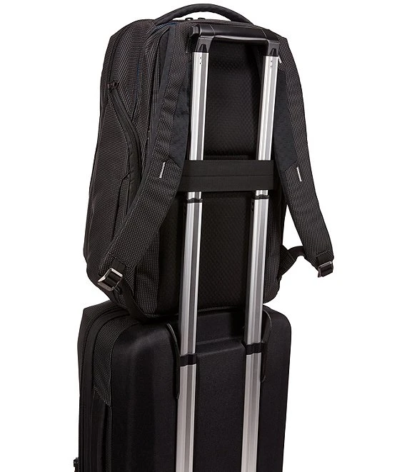 - Securely attach backpack to rolling luggage with the pass-through panel