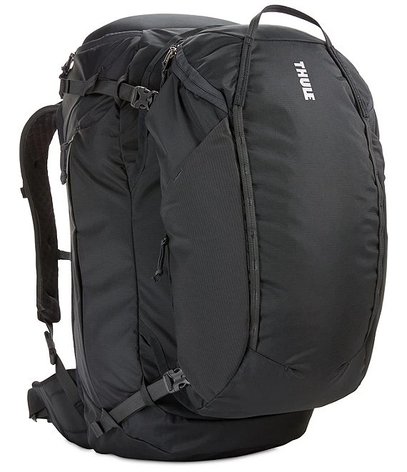 An extended-travel adventure backpack with a detachable daypack, built-in safety features and a backpanel cover to prevent wear and tear.