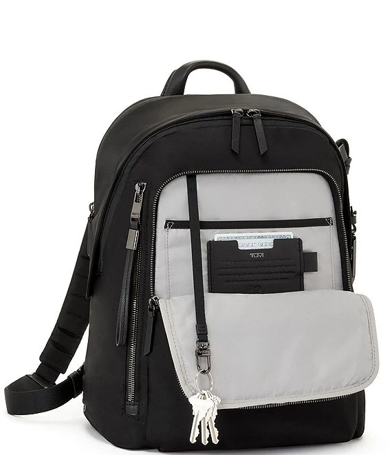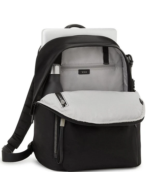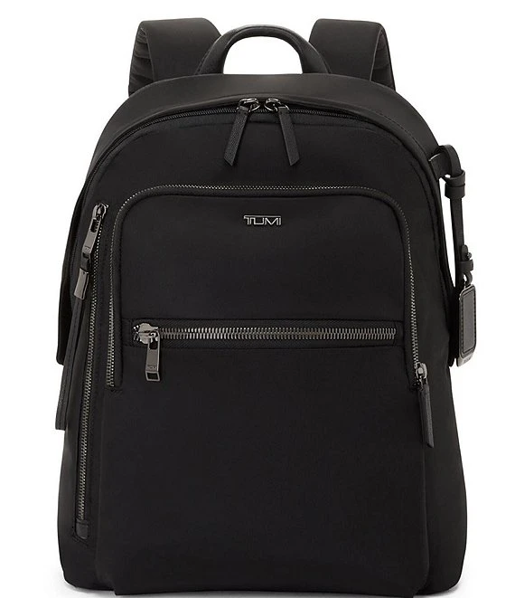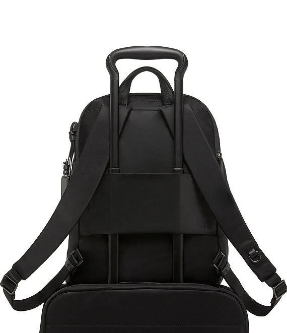 - Padded adjustable backpack straps with D-ring and loop compatible with select Tumi accessories