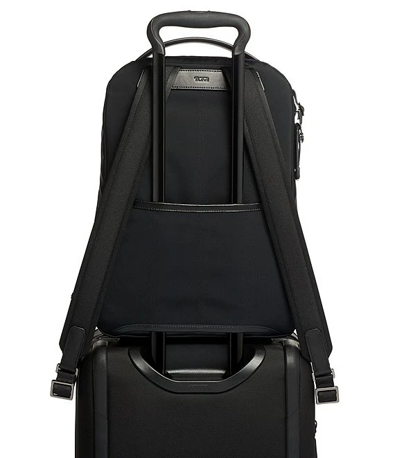 - Exterior Features: Zip entry to main compartment, Front U-zip pocket, Front straight-zip pocket with padded lining, Back quick-access pocket with magnetic snap, Retractable leather top handle, Padded/adjustable leather-trimmed backpack straps, Add-a-Bag sleeve