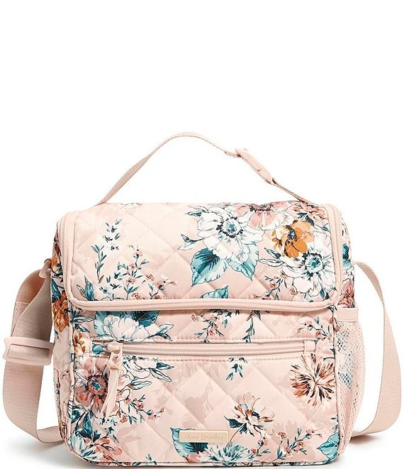 From Vera Bradley, the Peach Blossom Boquet Crossbody Lunch Bag features: