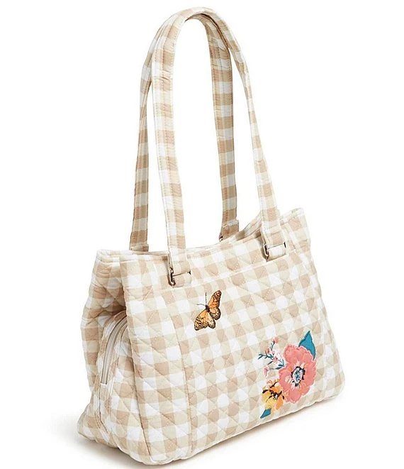 From Vera Bradley, the Peach Blossom Picnic Multi Compartment Shoulder Bag features: